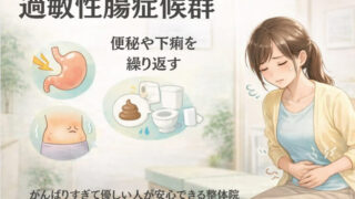 胃腸の不調(便秘・下痢・過敏性腸症候群・食欲不振) 東大阪市で過敏性腸症候群にお悩みの方へ|便秘と下痢を繰り返す原因は自律神経?整体で整える方法 東大阪市で過敏性腸症候群(便秘と下痢を繰り返す症状)にお悩みの方へ。原因の一つは自律神経の乱れかもしれません。頑張りすぎてしまう優しい女性に多いお腹の不調について、わかりやすく解説します。 2026.03.10 胃腸の不調(便秘・下痢・過敏性腸症候群・食欲不振)