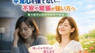 東大阪市で不安やパニック、動悸や息苦しさにお悩みの方へ。自律神経の乱れは食事や血糖バランスが関係していることもあります。無理なくできる対策や考え方をやさしく解説しています。