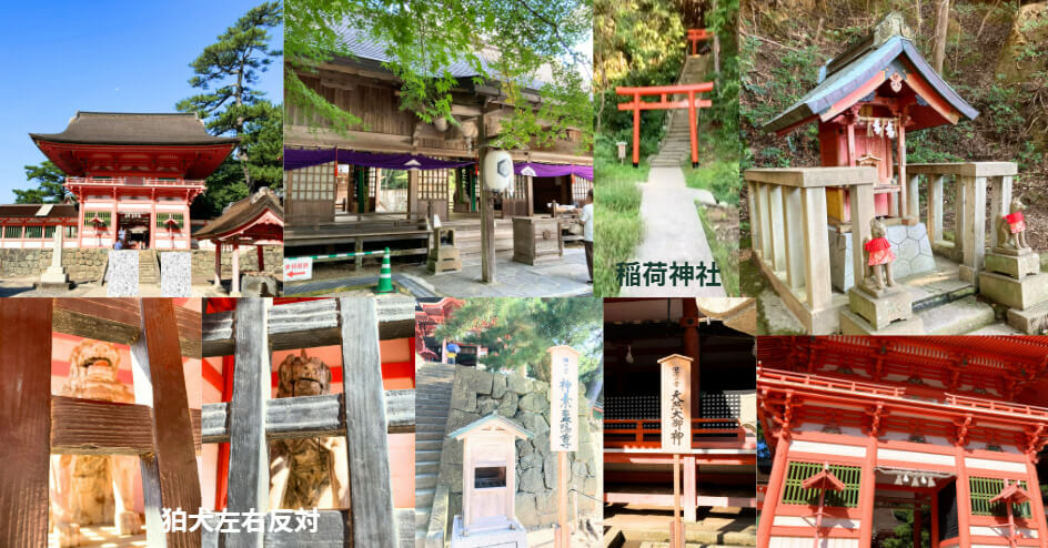 ご利益は「悪縁と闘い良縁を結ぶ」とされ、特産品の「御砂守」は、魔除けや病気平癒、交通安全などにご利益があると信じられています。一般的に「上宮、下宮」の順に参拝すると良いとされています。