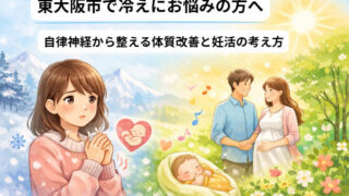 冷え 【東大阪市・冷え性専門整体】43歳で妊娠できた理由|柔道整復師が教える冷え改善と食事の実践法 東大阪市で冷えにお悩みの方へ。自律神経の乱れや体の緊張に着目した体質改善の考え方を解説。妊活中の方にも大切な生活習慣や整え方をわかりやすくお伝えします。 2026.04.13 冷え
